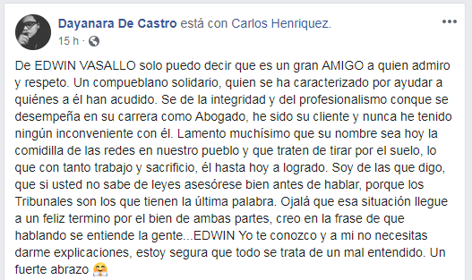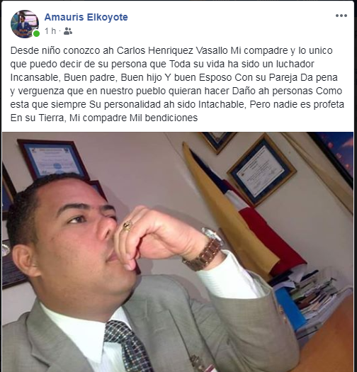 Apoyo a Carlos Henriquez Vasallo en la redes sociales.