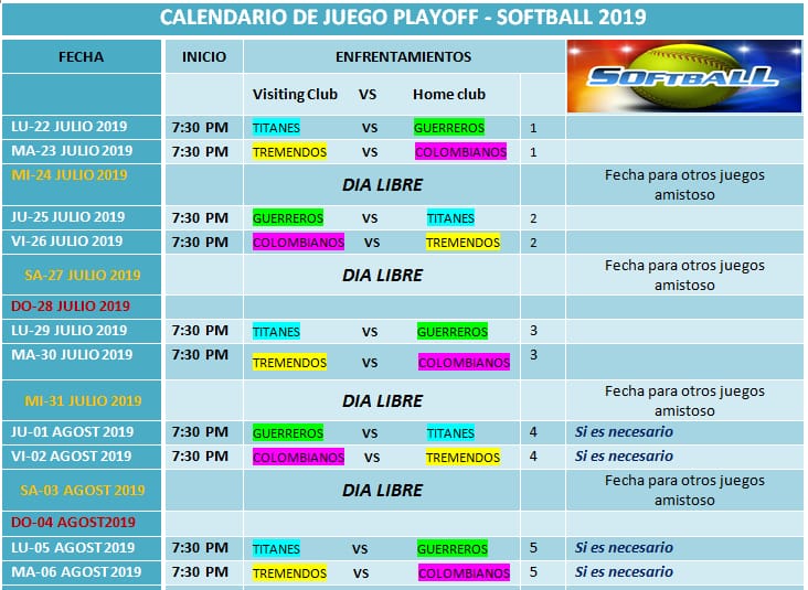 EQUIPOS: TITANES, GUERREROS, TREMENDOS, COLOMBIANOS
