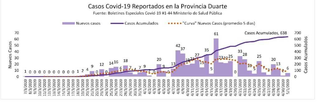 Aunque no se puede afirmar que la pandemia del coronavirus está controlada en San Francisco de Macorís, las estadísticas más actualizadas proveyentes del ministerio de Salud Pública revelan una notable disminución del número de nuevas personas contagiadas, sumando un total a la fecha de 638 contagiados y manteniéndose en 76 el número de muertes sin que se hayan reportado nuevos fallecimientos al 2 de Mayo del 2020.