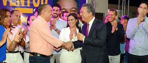 El Dr. Leonel Fernández fue recibido por el Lic. Pedro Esteban, quien además fue felicitado por el presidente, al esta de fiesta de cumpleaños.