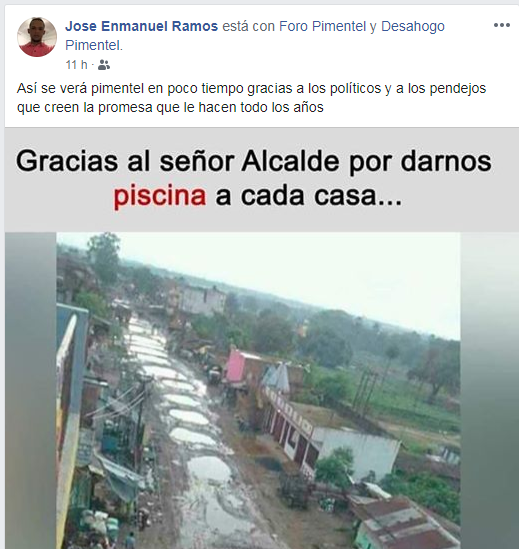 [Meme] Pimentelense colocan Memes en sus redes sociales por el deterioro de sus calles