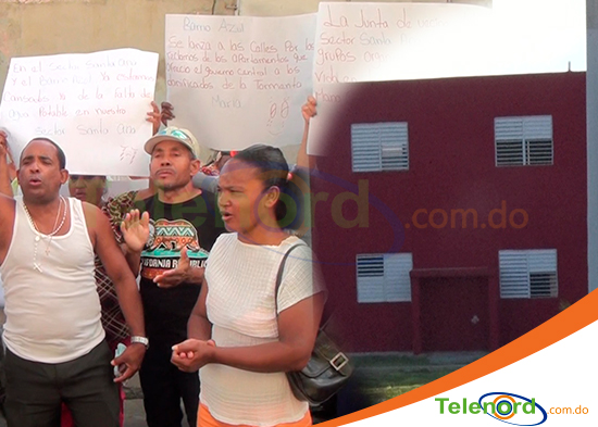 San Francisco de Macoris.- Con pancartas en mano, en medio de consignas, damnificados del huracán María en Barrio Azul de esta ciudad ,exigen la reubicación prometida por el gobierno hace más de dos años.