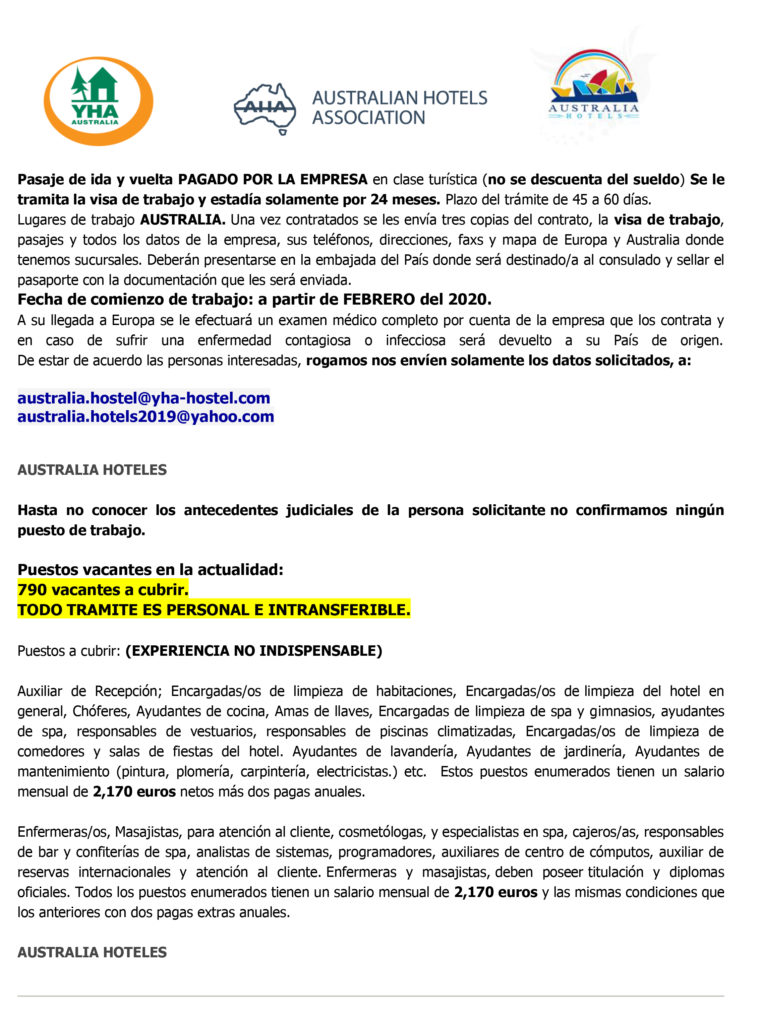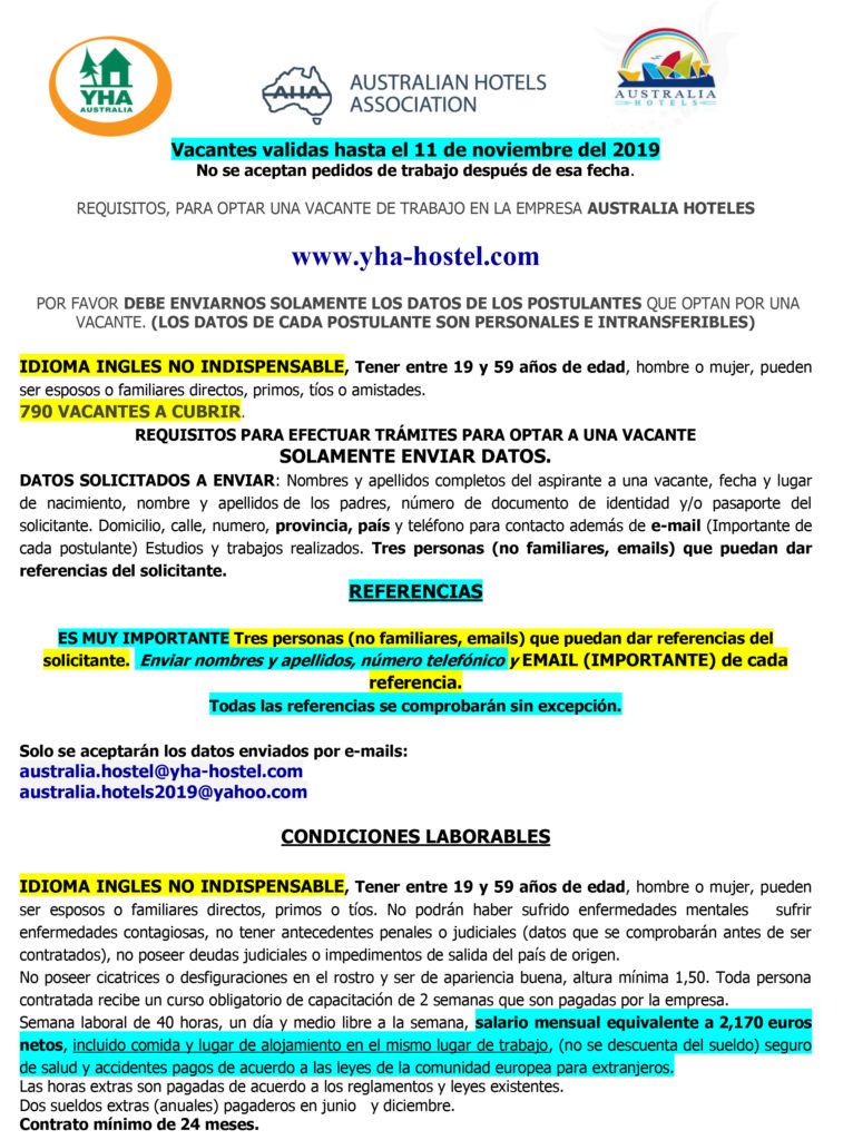 Nota: Esta información nos llegó vía www.yha.com.au, asi que tener pendiente si ellos piden algun deposito de dinero u otra forma de pago para gestionar visas o trámites.