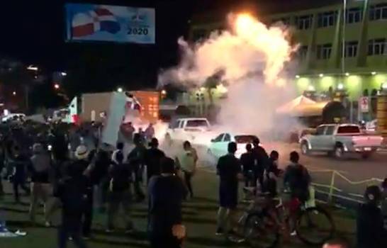 [Video] Con bombas lacrimógenas intentan dispersar manifestantes frente a JCE